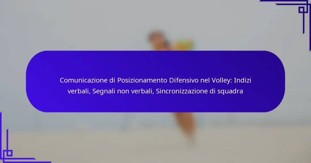 Comunicazione di Posizionamento Difensivo nel Volley: Indizi verbali, Segnali non verbali, Sincronizzazione di squadra