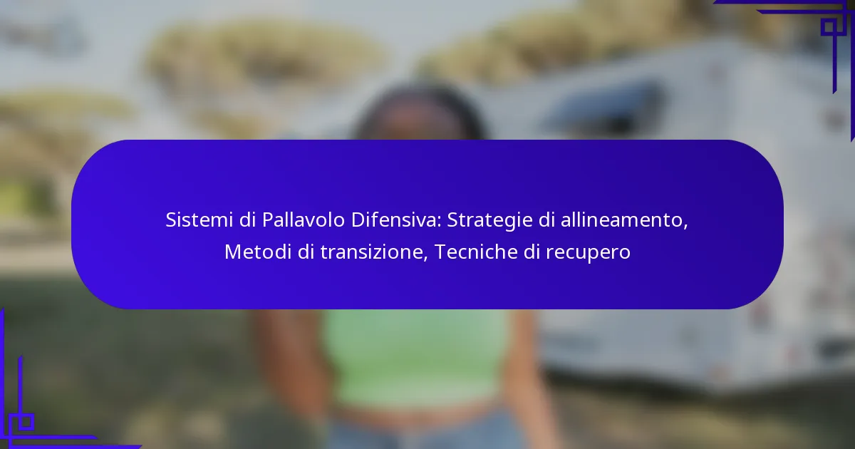 I sistemi difensivi nel volley si basano su strategie di allineamento chiave che posizionano i giocatori per massimizzare la copertura e ridurre al minimo le lacune. Comprendendo i ruoli dei giocatori e utilizzando formazioni efficaci, le squadre possono adattarsi ai punti di forza degli avversari. I metodi di transizione migliorano ulteriormente il gioco difensivo, consentendo un rapido passaggio dalla difesa all’attacco, mentre tecniche di recupero efficaci garantiscono che i giocatori mantengano la loro prontezza e compostezza durante l’intera partita.