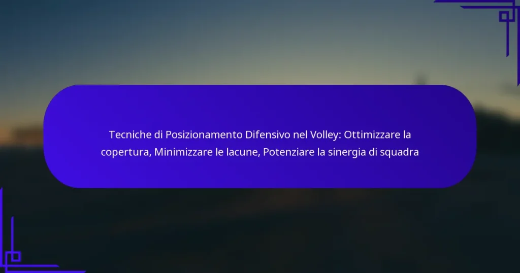 La posizione difensiva nel volley è essenziale per creare una difesa solida, concentrandosi su posizionamenti strategici, zone di copertura e ruoli definiti per i giocatori. Dominando questi elementi, le squadre possono anticipare efficacemente gli attacchi degli avversari e migliorare le loro prestazioni complessive in campo. Comprendere come ottimizzare il posizionamento dei giocatori non solo massimizza i punti di forza individuali, ma garantisce anche una copertura completa, portando infine a risultati difensivi migliori. Key sections in the article: Toggle Quali sono…