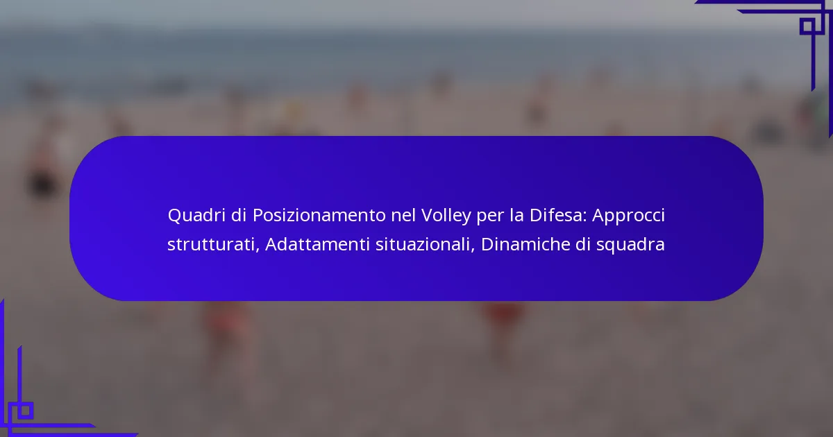 I quadri difensivi efficaci nel volley variano in base al tipo di squadra, al livello di abilità e agli obiettivi strategici. Comprendere questi quadri aiuta le squadre ad adattare la propria difesa per massimizzare le prestazioni durante le partite.